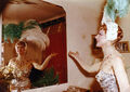 After a tour in the French West Indies, she went to perform in 1957 with Fritz Mey's Circus Sarrasani, where she presented for the first time her hand-balancing on the trapeze bar, a rare exercise that had been created Miss Fillis (Aimée Marcoud), and was performed only by Maryse Bégary. (Aimée's and Maryse's teacher was Nicolas Marcoud, Aimée Marcoud's uncle.) When the show was in Berlin, Elsane, who was then fifty-one, filmed a promotional clip in which she performed with her trapeze hanging from a giant crane, fifty meters in the air! It happens to be Elsane's only known filmed document. She had also created by then a corde lisse(French) A vertical rope used in aerial acts, either for the act itself, or to climb up to an apparatus. Called Spanish Web when covered with fabric. (Spanish web) act that had the same quality of elegance as her trapeze act—but was certainly less demanding.