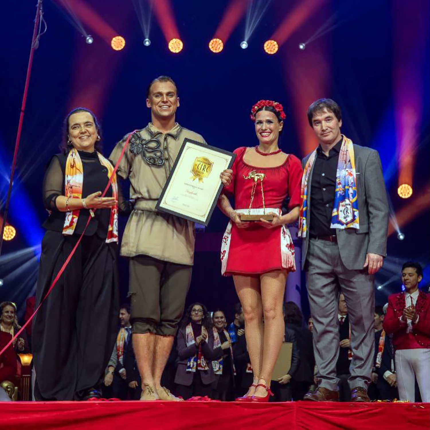 Maria Andreeva & Egor Sukhorukov being presented with the Elefant d'Or at the Festival Internacional del Circ of Girona]], Spain (2026) — Photo X
