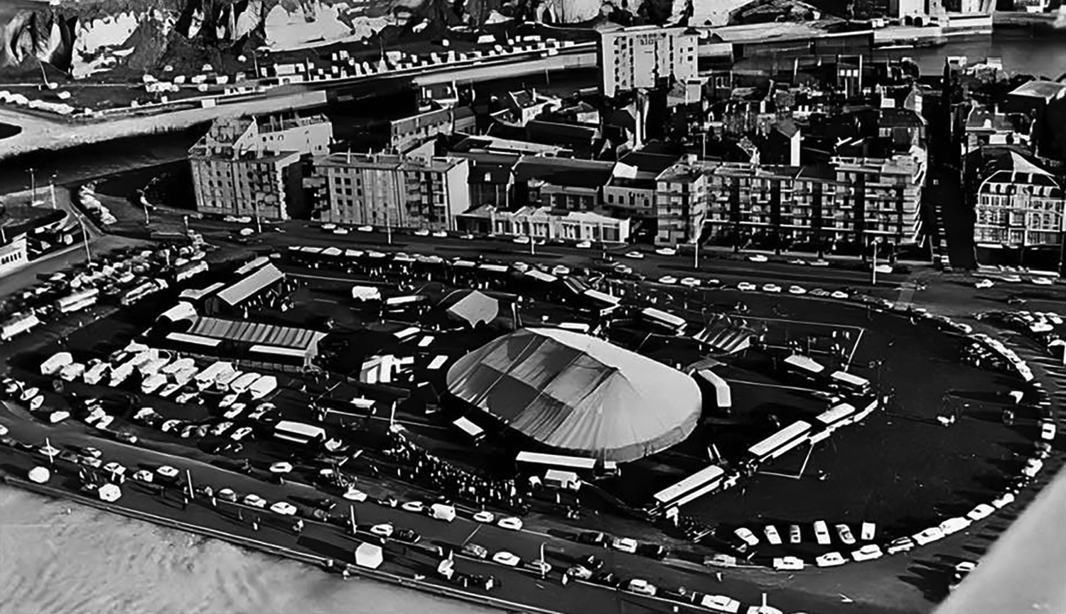 Aerial view of he Cirque Bouglione in the port city of Dieppe (1969) — Photo X