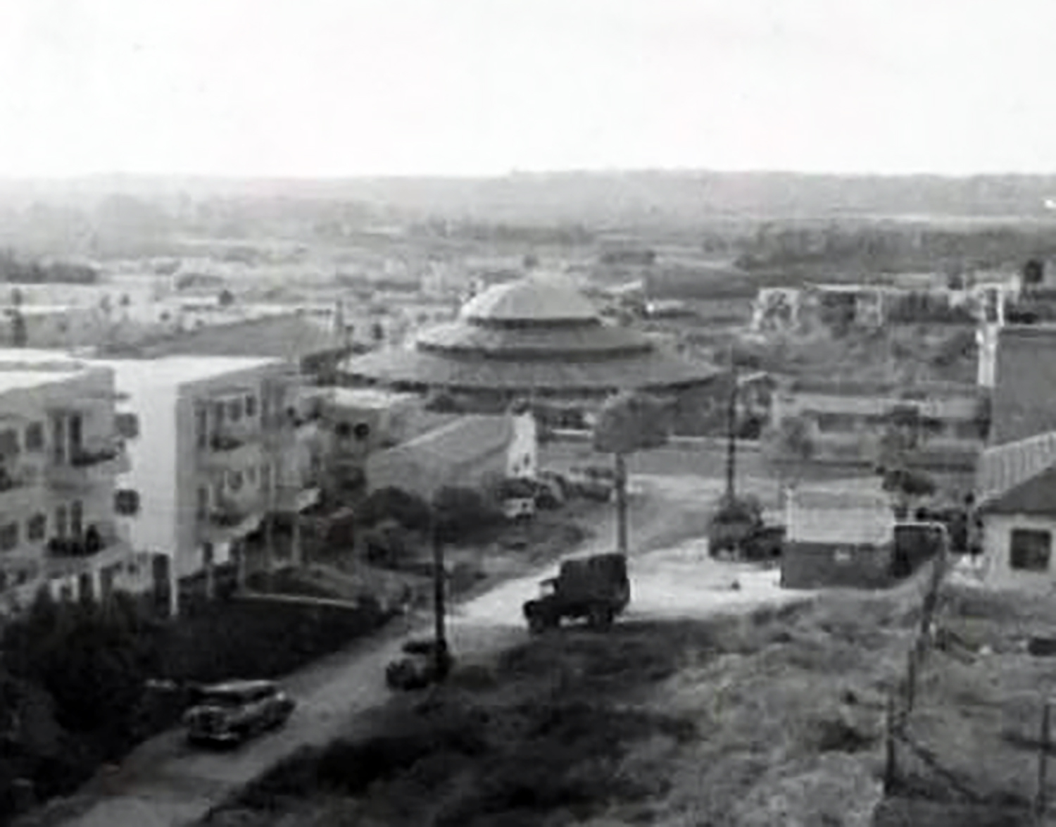 Aerial view of the Ziratron in Ramat Gan, east of Tel Aviv, Israel (1955) — From TheEscapeActShow website