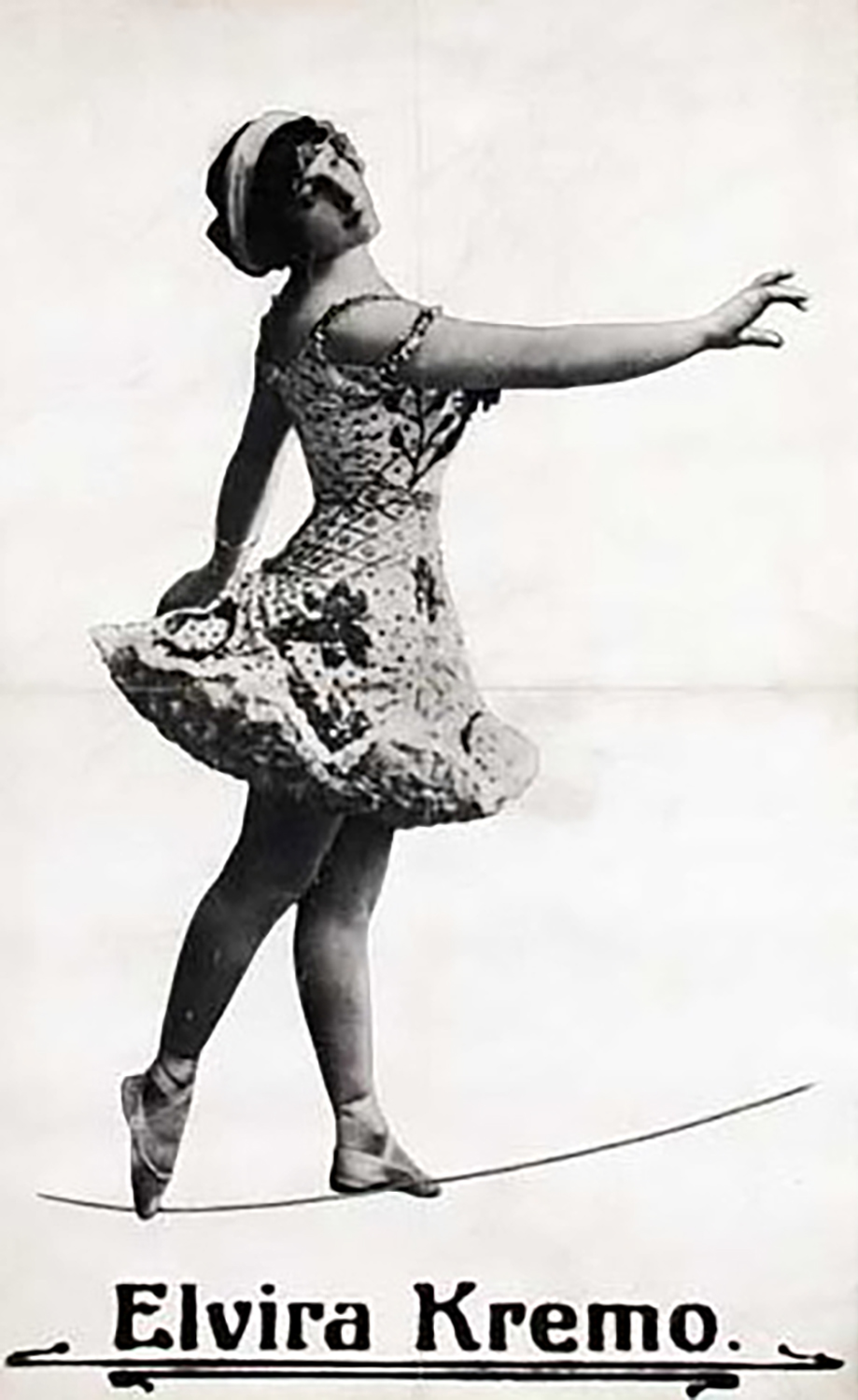 | 02:56, 28 April 2026 | Elvira Kremo.jpg (file) | 333 KB | Promotional card for Elvira Kremo, tight wire dancer (1910) — ''Private Collection'' | 1 | |